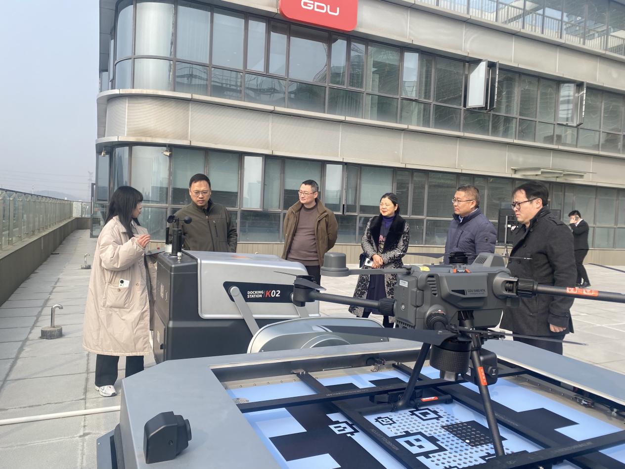 雷总监首先带领bat365在线官网登录一行参观了普宙科技的展厅,介绍了普宙科技的基本情况和发展历程。重点了解了其旗舰产品全自主飞行无人机系统、轻量化高精度载荷设备及AI驱动的空域管理平台。普宙科技展示了最新一代长续航工业无人机,其搭载的多光谱传感器和实时数据处理能力,可广泛应用于农业植保、电力巡检、环境监测等领域。在演示无人机的飞行和充电过程中,介绍了其续航时间和可载重量、应用领域等。目前普宙科技正主要为电力、环保、消防、应急、林业、文旅等领域提供无人机飞行执照培训等服务。